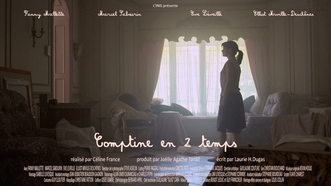 Synopsis : Suite au décès de son père, Jeanne, une femme fragile, revient après plusieurs années dans son ancienne maison familiale pour y faire le ménage. Elle y fera une rencontre qui changera à jamais sa façon de voir la vie. Comptine en deux temps, un conte onirique où la candeur d’une enfance perdue refait surface.